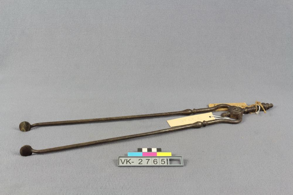 Feuerzange mit kleinen runden Backen und einem verschraubten Gelenk.