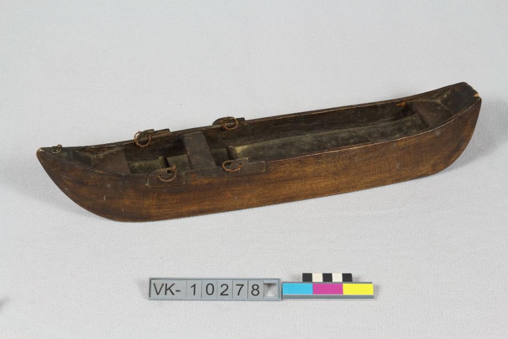 Nachbau einer Donauzille aus Spitz, ausgelegt für zwei Ruderer. Das Modell ist dunkel gebeizt.