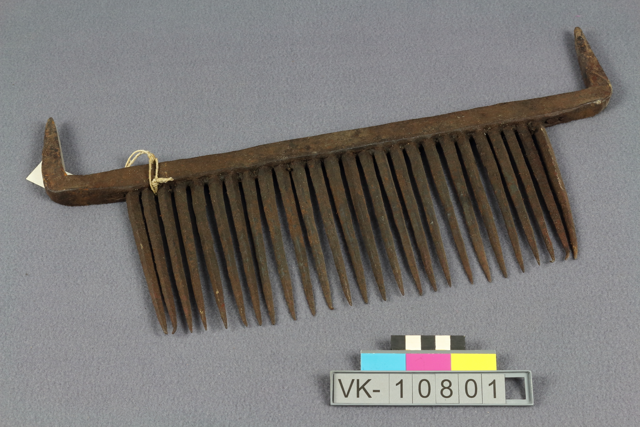 Hechel (Riffel) aus Schmiedeeisen mit zwei Einschlagspitzen.