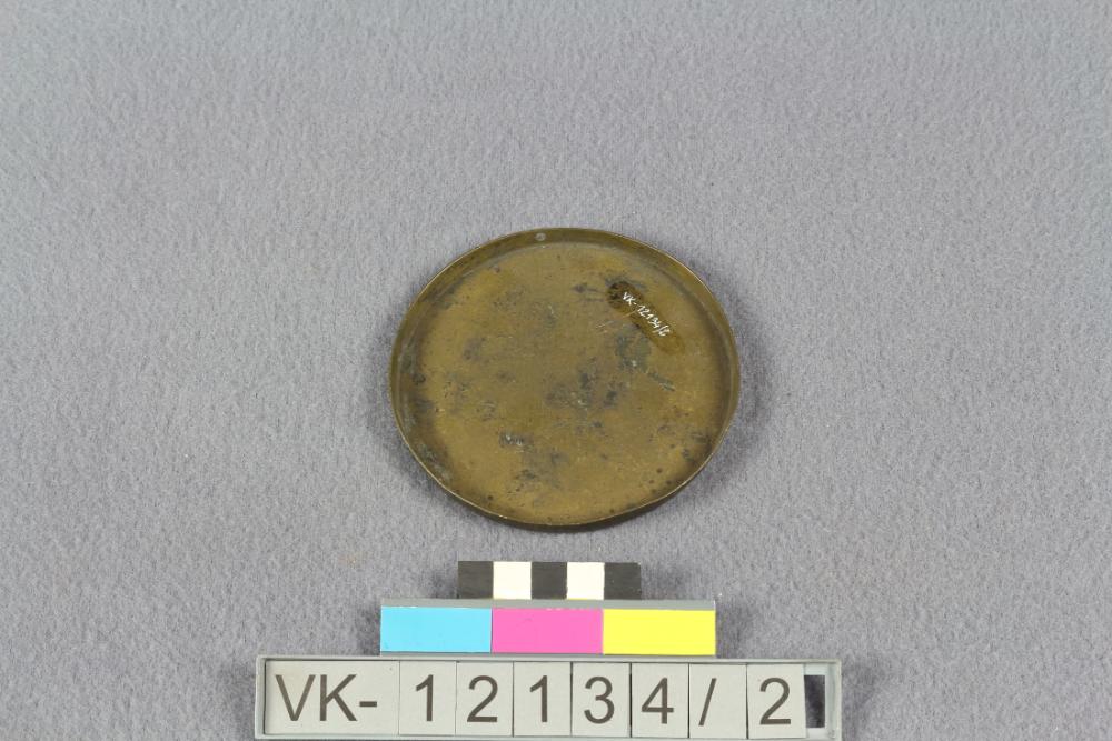 Flache Waagschale aus Messing mit schmalem Rand.