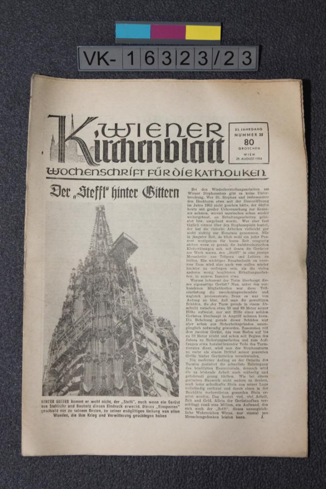 Zeitung: "Wiener Kirchenblatt", 35. Jahrgang Nr. 35, mit Kinderbeilage.