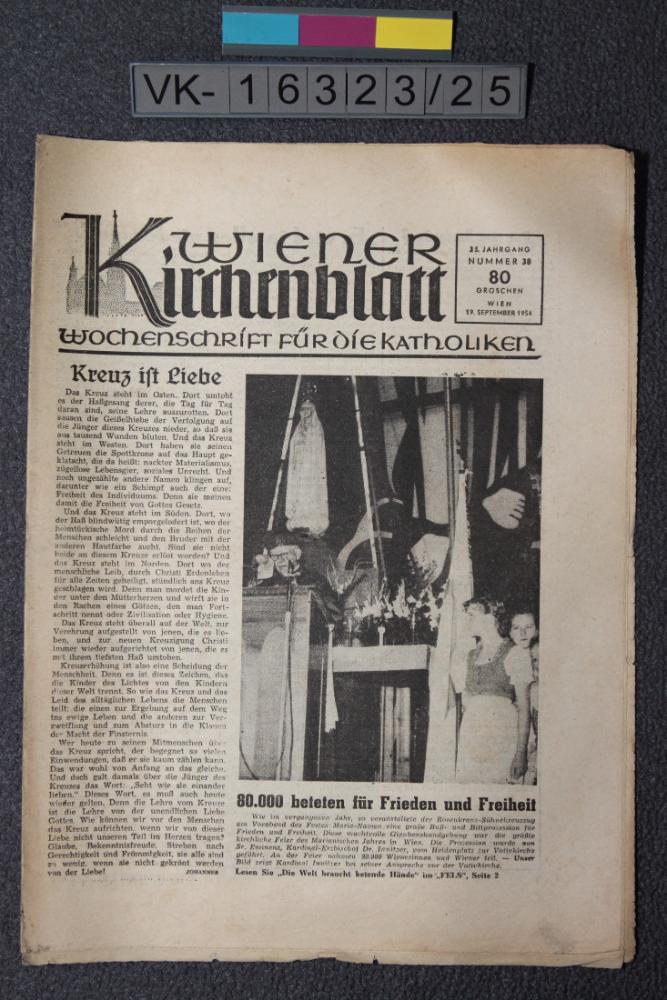 Zeitung: "Wiener Kirchenblatt", 35. Jahrgang Nr. 38, mit Kinderbeilage.