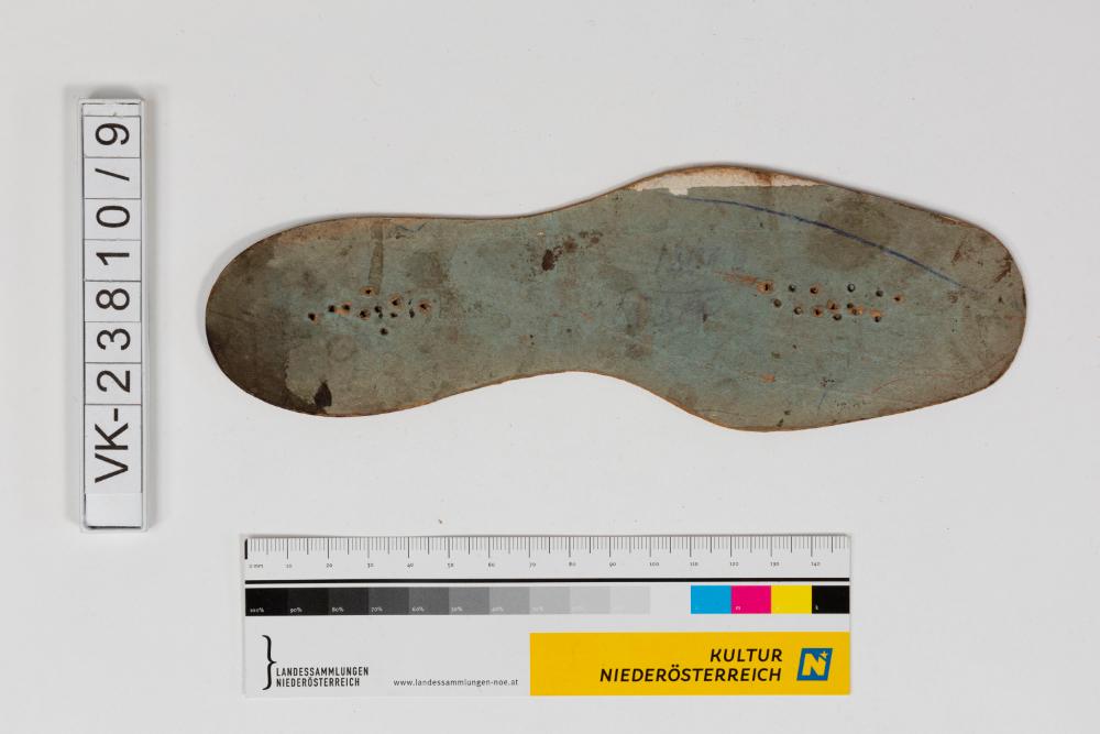 Sohlenform aus Karton mit handschriftlicher Beschriftung.