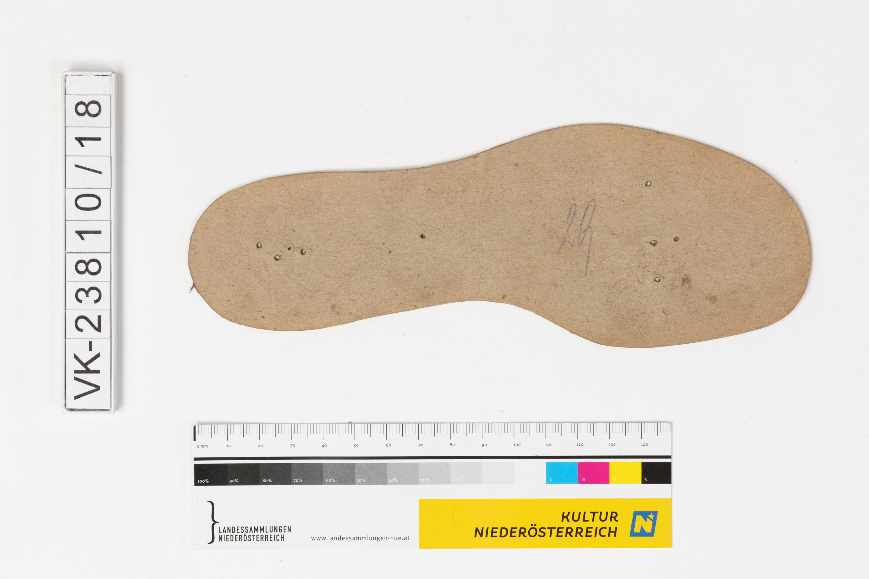 Sohlenform aus Karton mit handschriftlicher Beschriftung: "29".