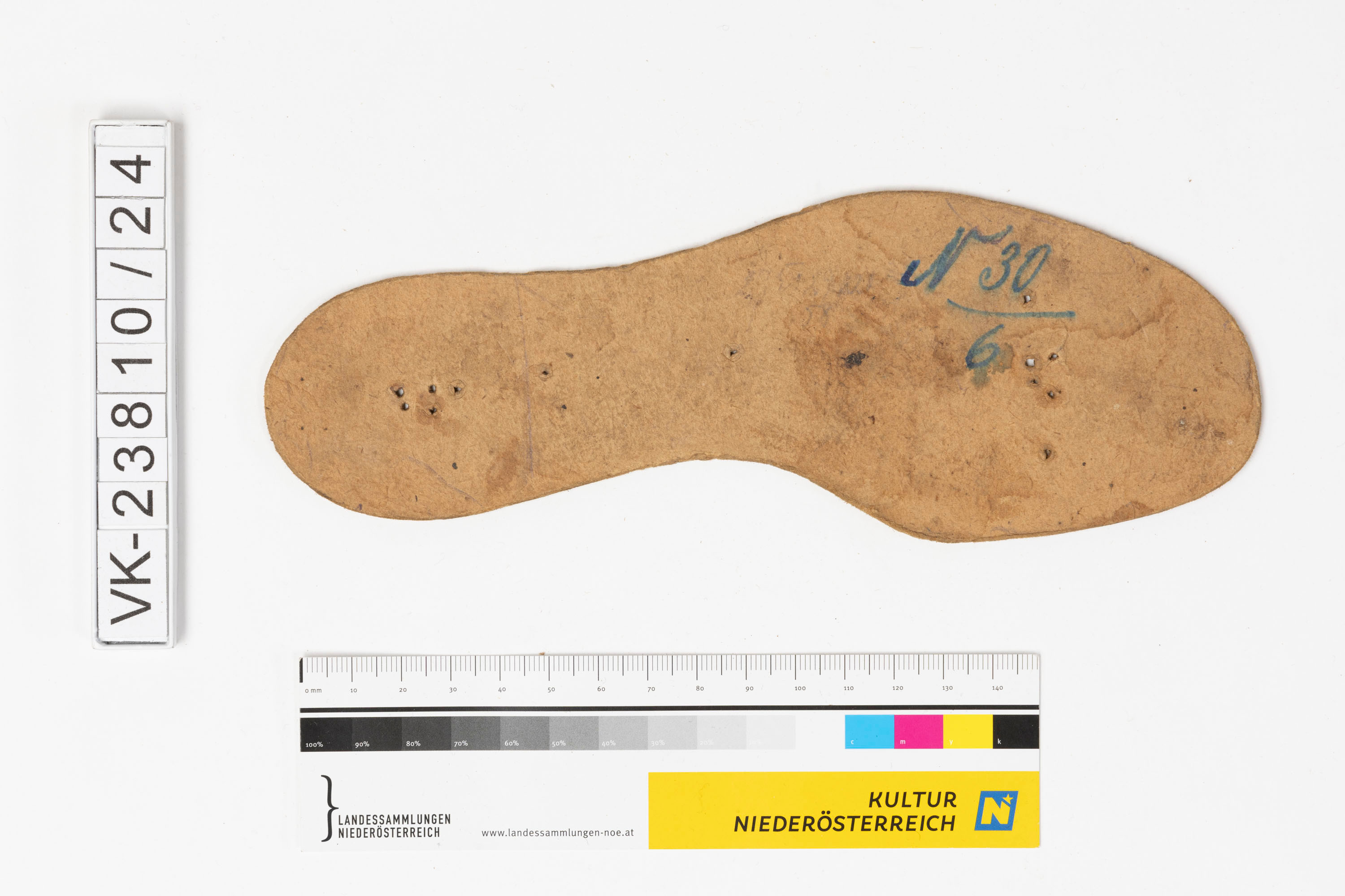 Sohlenform aus Karton mit handschriftlicher Beschriftung: "N 30/6".