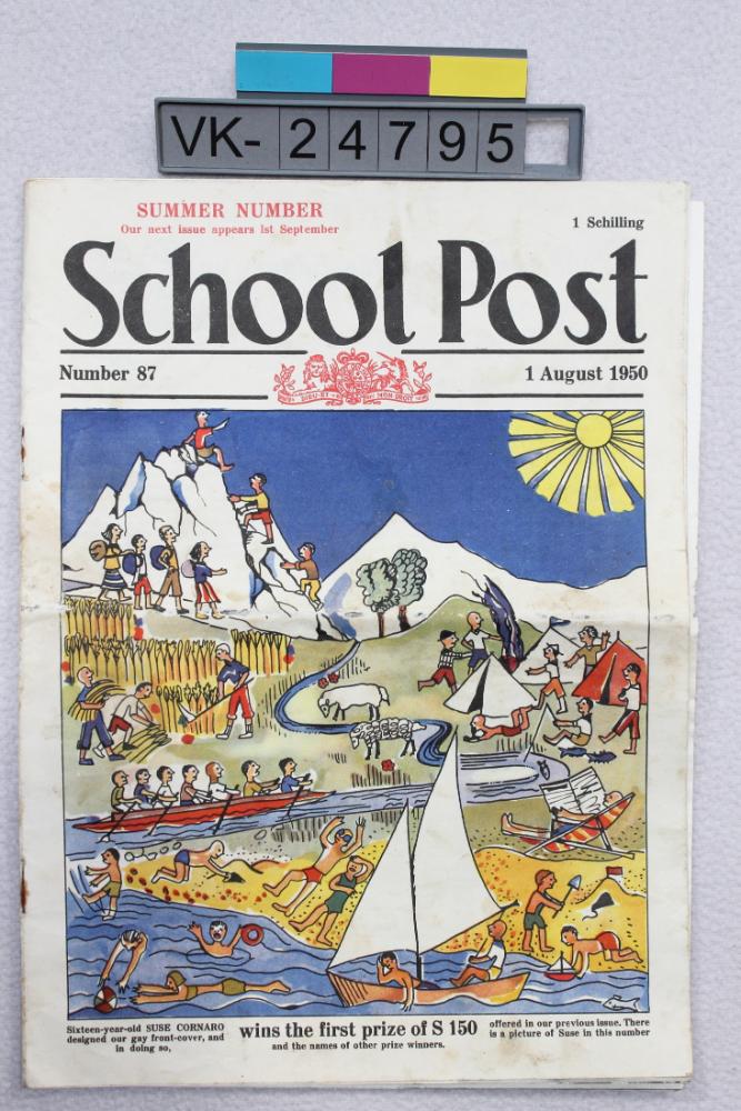 Kinder-Zeitschrift "School Post" in englischer Sprache. Das Titelblatt ist mehrfärbig gedruckt und zeigt eine Zeichnug mit verschiedenen Freizeitaktivitäten.