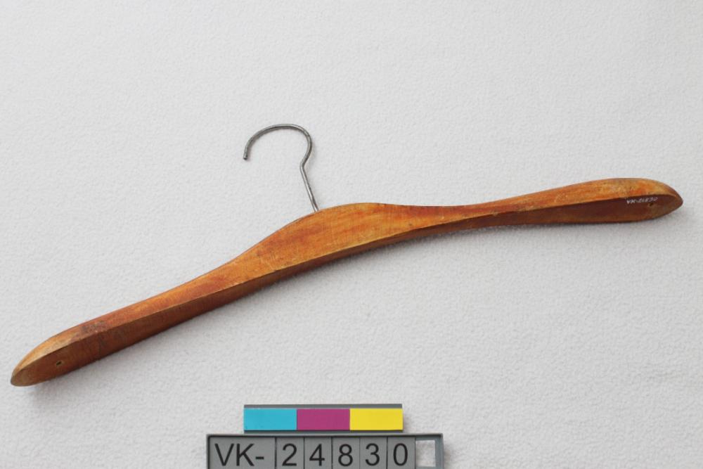 Kleiderbügel (Formbügel) aus Holz mit einem Metallhaken.