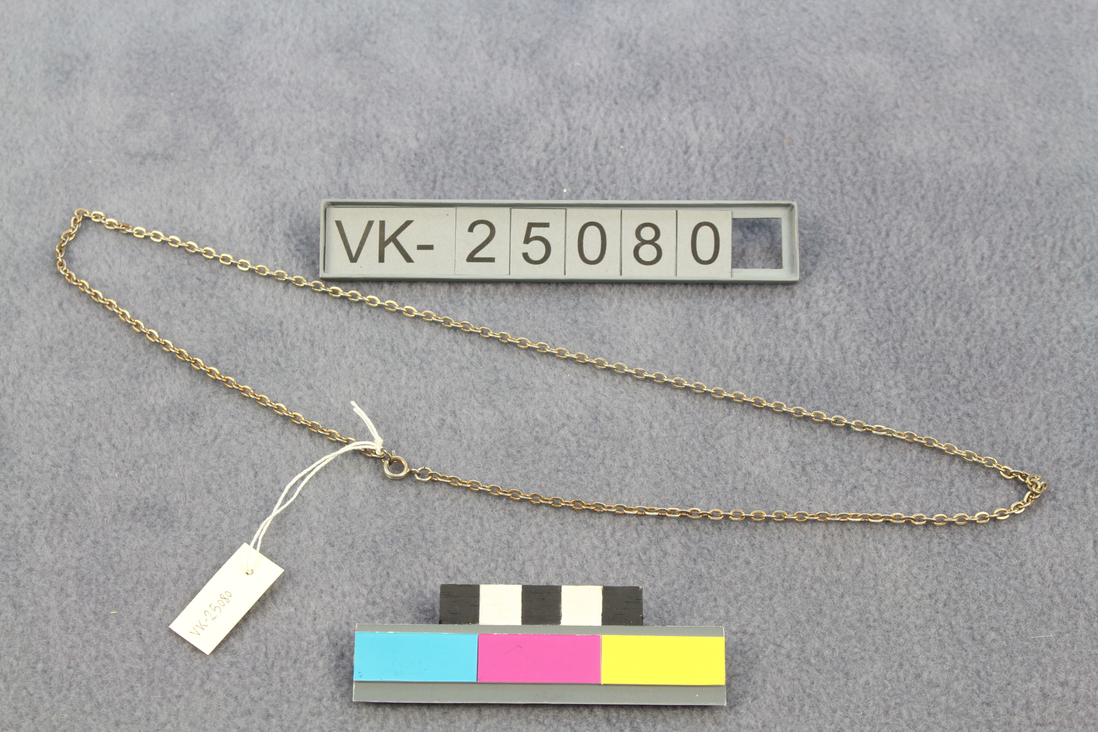 Silberne Halskette mit Federringverschluss. Das Objekt befindet sich in der Schatulle mit der Inventarnummer VK-24882.