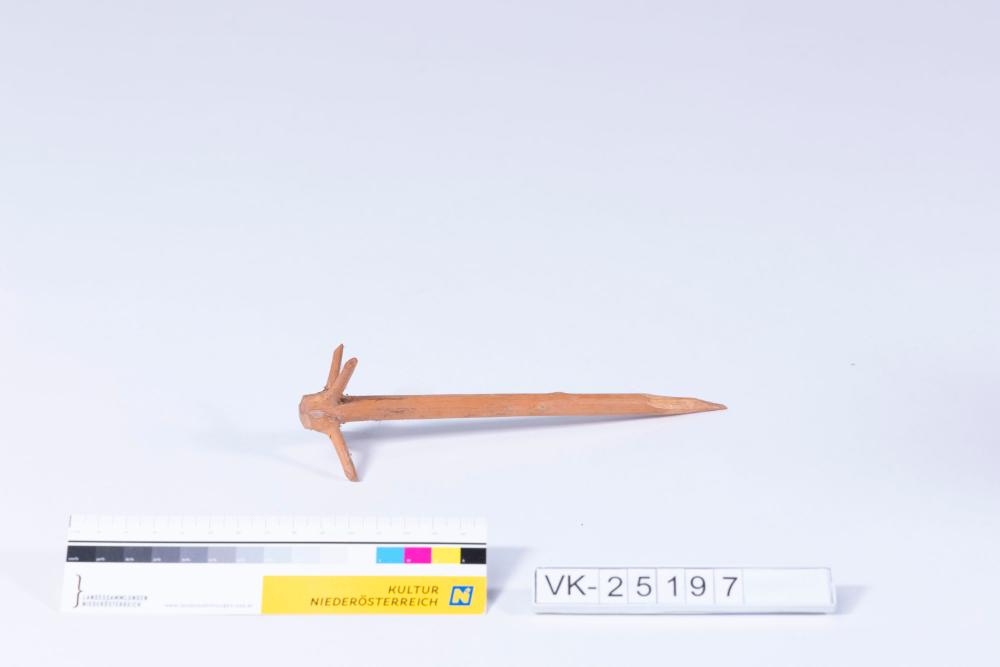 Quirl aus einem geraden Holzstab mit vier radial abstehenden bearbeiteten Ästen.