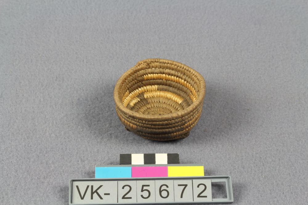 Kleines zylindrisches Simperl aus hellem und dunklem Stroh.