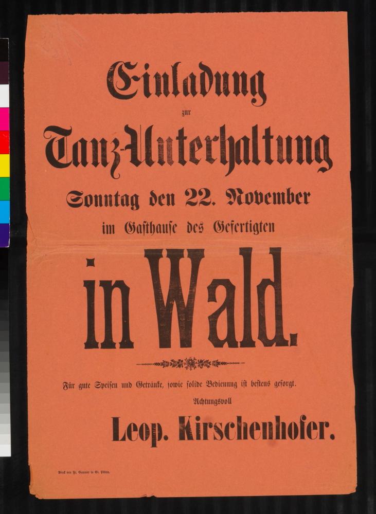 Einladung, Tanzunterhaltung Wald bei Pyhra, Gasthaus Leopold Kirschenhofer, 22. November. d. J.