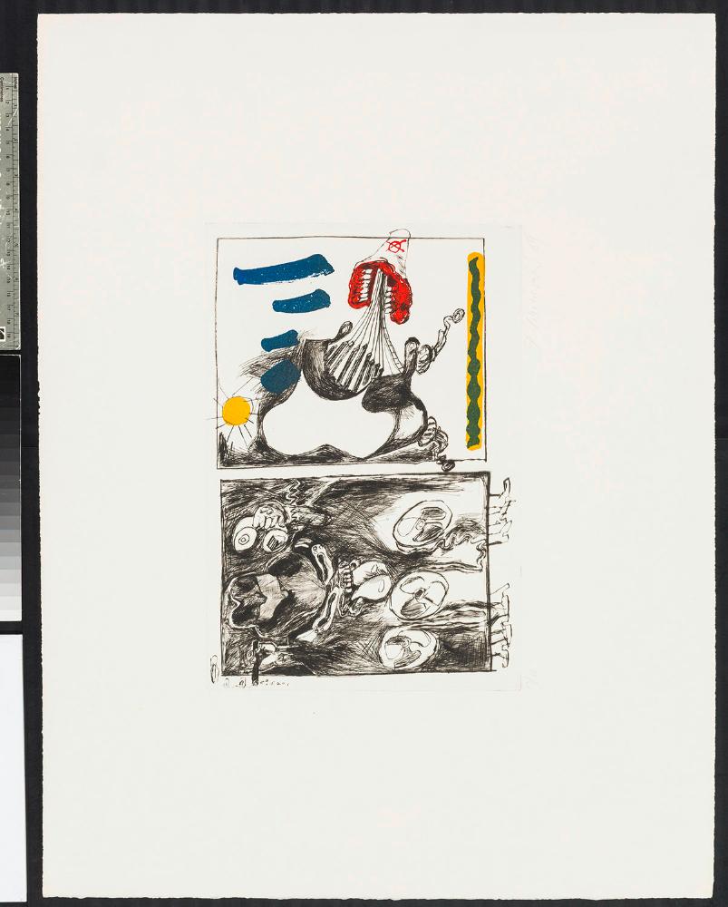 Rudolf Schönwald, Ohne Titel, Radierung, Lithographie auf Papier, 1969, © Bildrecht, Wien 2024