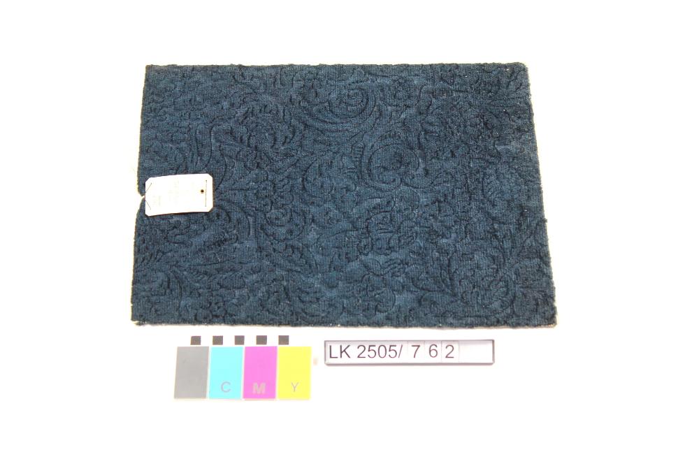 Presssamtgewebe in blau, mit Blumen- und Blättermuster; Jutepeluche; gepresst