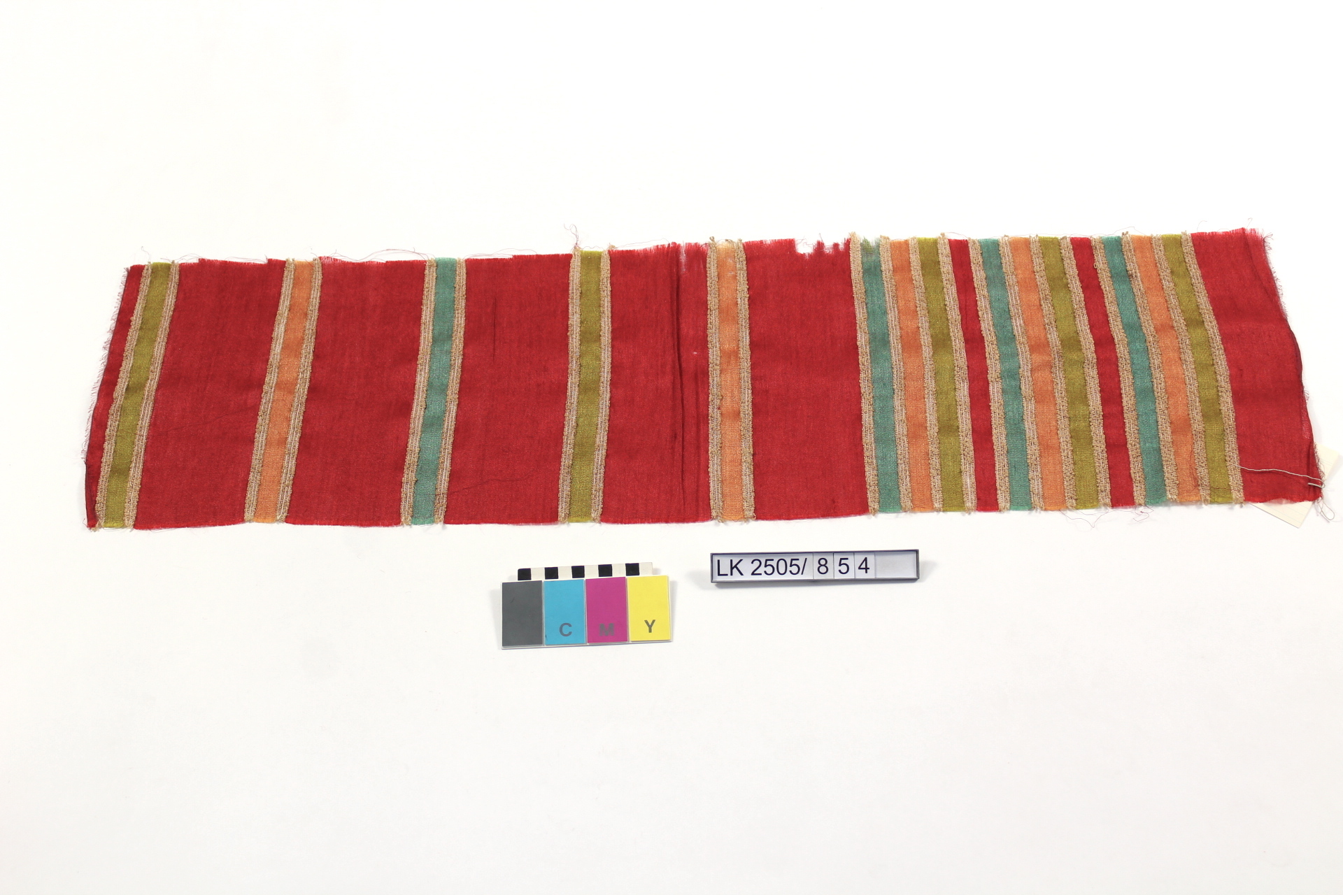 Stoffmuster quergestreift mit Chenille in rot, türkis, grün, orange, beige; Dekorstoffmuster für Flaconnévorhänge