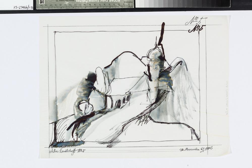 SignaturRecto, monogr. unteres Drittel, mittig: "AW", "AW"; Recto, bez. unten links: "schöne Landschaft ? 5", dat. unten rechts: "20. November 69, 1.54 h"; Recto, oben rechts: "? 5", "? 5"