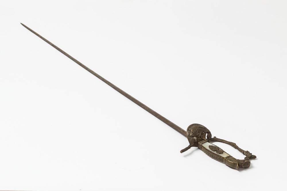 Der Empireden misst eine 78 cm lange Klinge. Das abwärts gewölbte Stichblatt mit Löwenköpfen, aufgelegter, gekrönter Doppeladler mit Schwert und Schild, darauf das niederösterreichische Landeswappen. Die Parierstange mit Blattzierrat in einen Bügel übergehend, mit der Darstellung einer Sphinx endend, der Griffring und die Griffeinfassung mit Blattdekor, halbe Griffkappe mit Adlerkopf, Perlmuttgriffschalen, auf der äußeren Griffschale das gekrönte niederösterreichische Landeswappen.