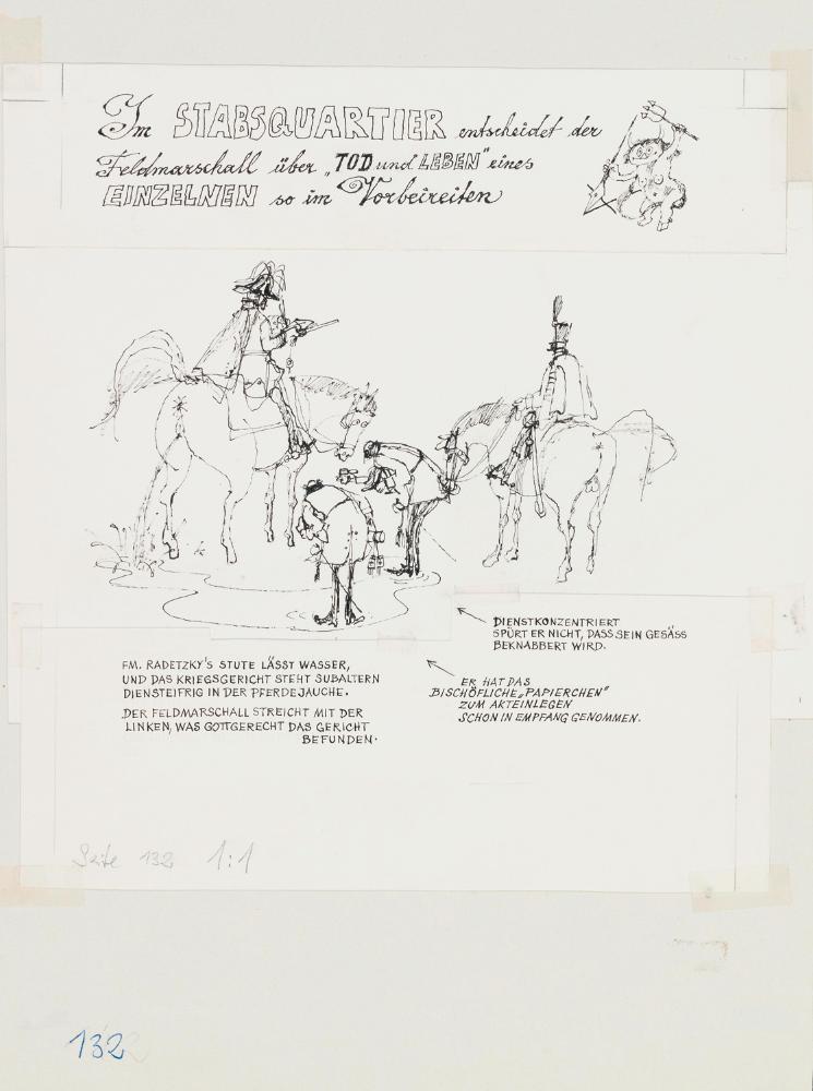 Illustration / Wilfried Zeller-Zellenberg: Seid lieb auch zu Disteln. Vom Undsoweiter der k. u. k. Herrlichkeit 1918 bis dato und in alle Ewigkeit. Gezeichnet und geschrieben von Wilfried Zeller-Zellenberg, Europa Verlag Wien, 1976.