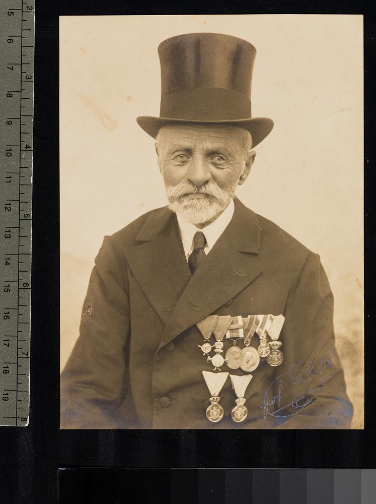 Johann Loschek in hohem Alter mit Hut und Auszeichnungen