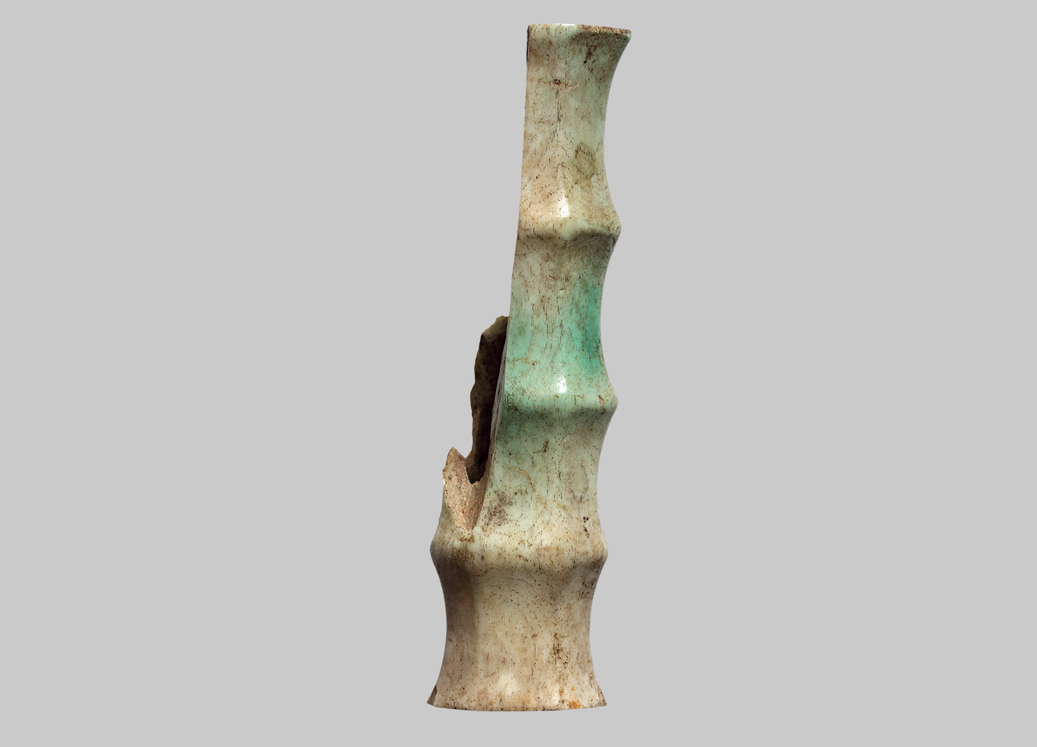 Länglicher Griff, durch abgerundete Wülste in vier eingezogene Bereiche gegliedert (Fingermulden). Nur mehr fragmentarisch erhalten.