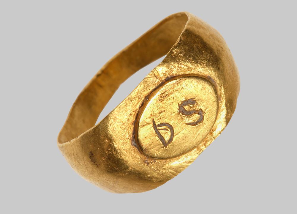 Der Ring aus dünnem Goldblech ist an der Platte verbreitert und trägt die Inschrift D(eo?) S(oli?) („dem Sonnengott“?).