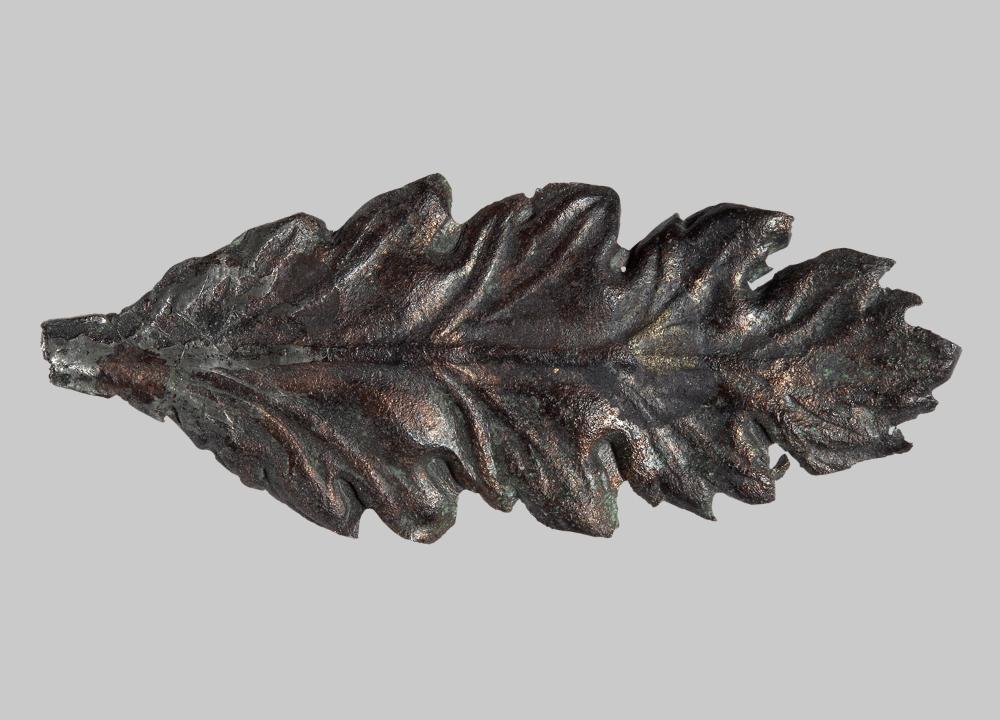 Der Eichenlaubkranz war eine der höchsten militärischen Auszeichnungen und wurde auch vom obersten Reichsgott Iuppiter sowie vom siegreichen Kaiser getragen. Das Blatt könnte von der corona civica einer bronzenen Götter- oder Ehrenstatue stammen. Doch auch auf Statuen aus Stein konnte ein metallener Eichenlaubkranz appliziert gewesen sein, wie ein (heute verschollener) Porträtkopf des Kaisers Marc Aurel aus dem Tempelbezirk auf dem Pfaffenberg zeigt, der an der Stirnpartie eine bandförmige Ausnehmung, wohl für den Einsatz einer aus Metall gefertigten corona, erkennen lässt.