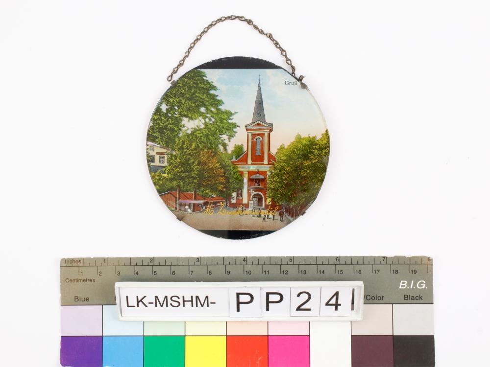 Koloriertes Andachtsbildchen der Wallfahrtskirche Mariahilf bei Zuckmantel.