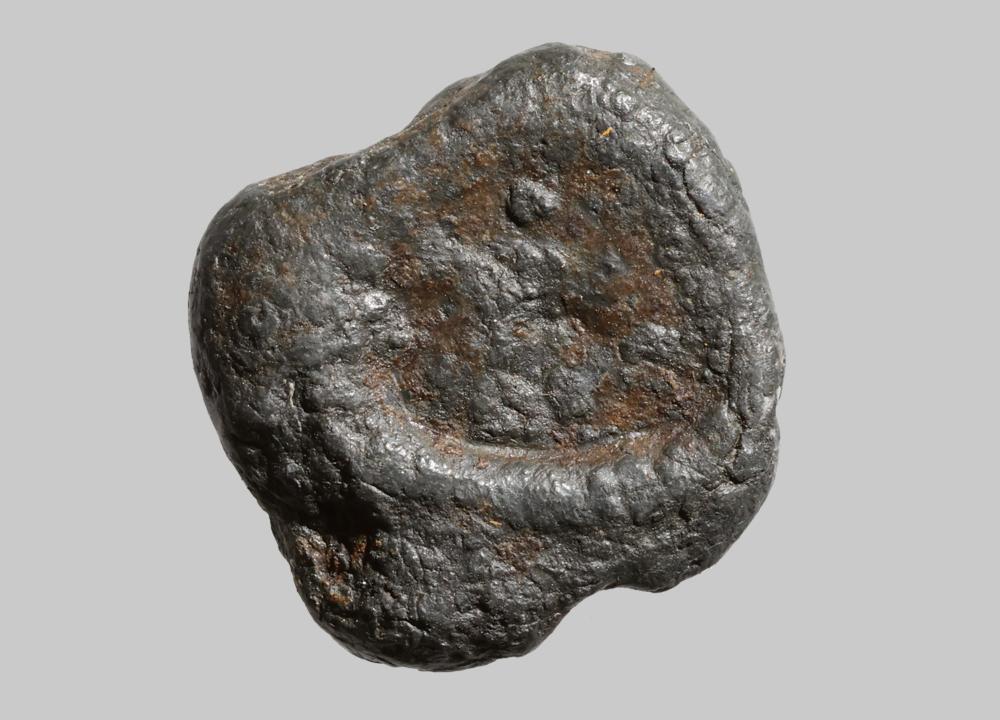 Rechteckige Plombe mit ovalem Stempel; figürliche Motiv kaum erkennbar; Salus thronend, linker Arm seitlich erhoben und einen Zepter haltend, rechter Arm nach vorne zum Opfern erhoben; hinten waagrechte Durchlochung