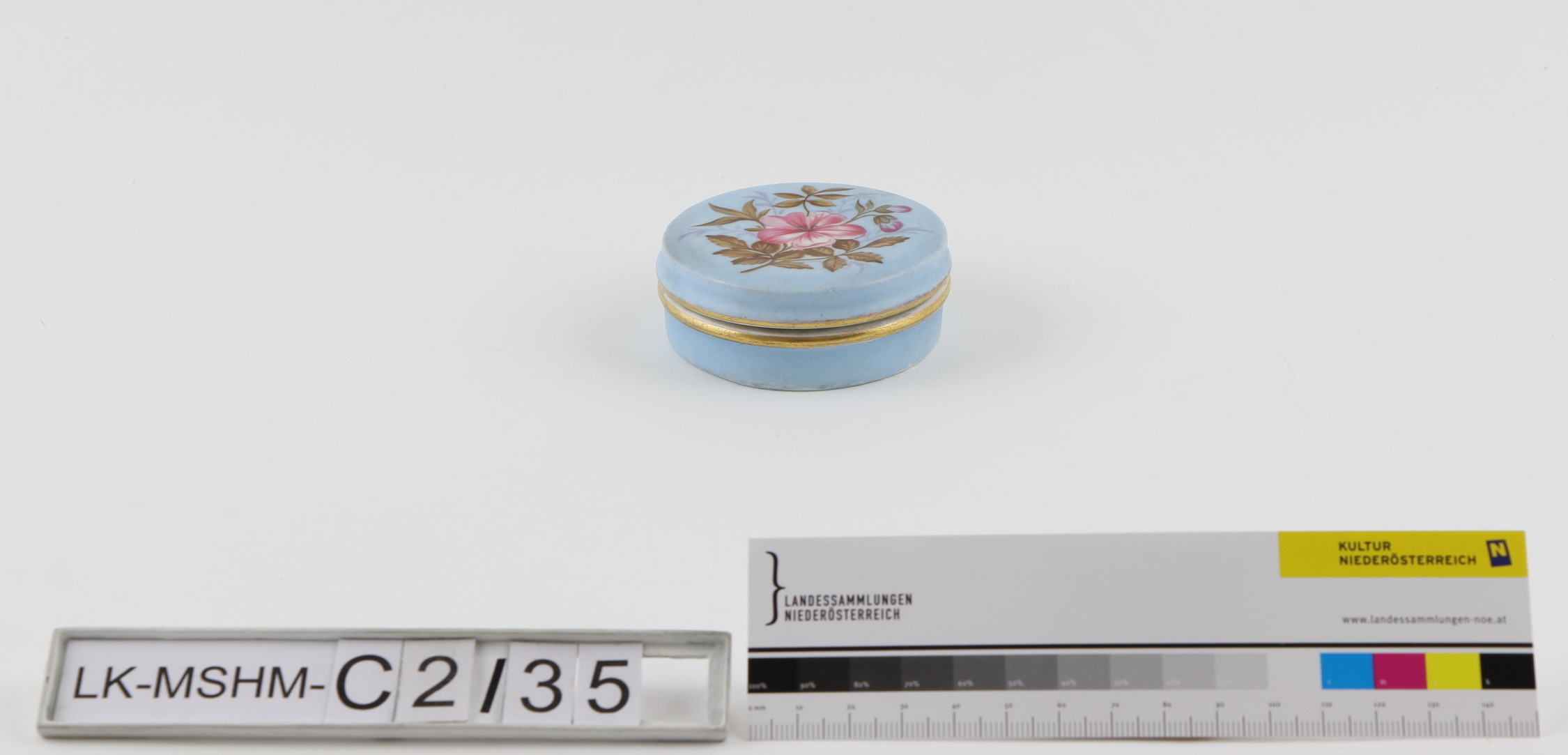 Objektname: Pudertiegel mit Deckel als Teil einer Toilettegarnitur
