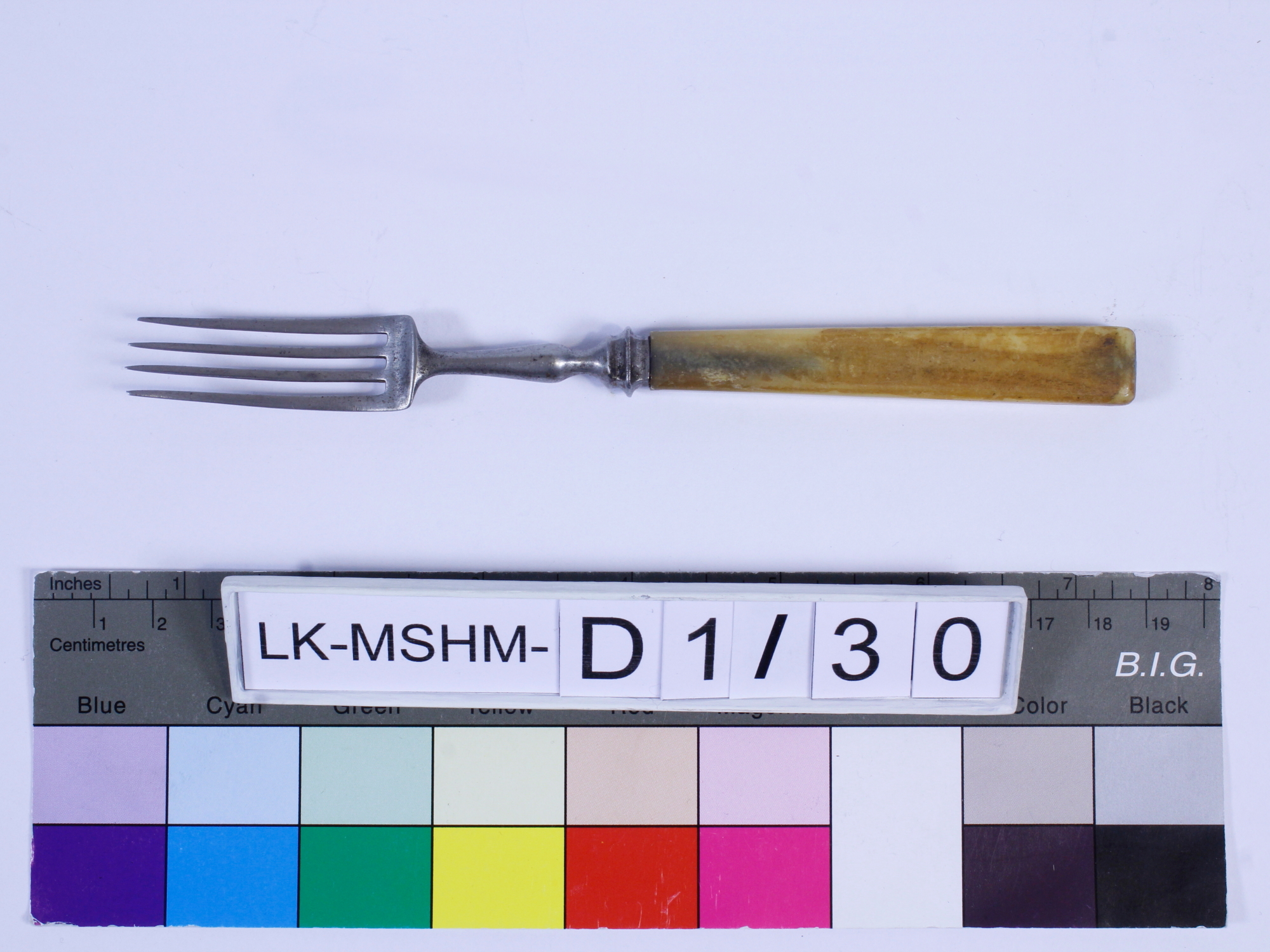 Dessertgabel aus Spillersdorf aus Stahl und Bein.