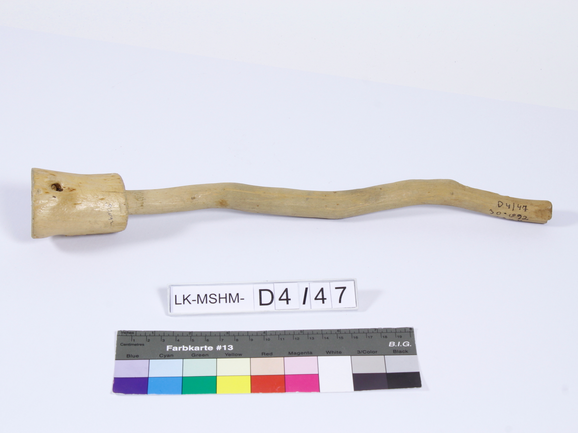 Kartoffelstampfer von Josef Halbhuber aus Jägerndorf, der während der "Vertreibung" geschnitzt wurde.
