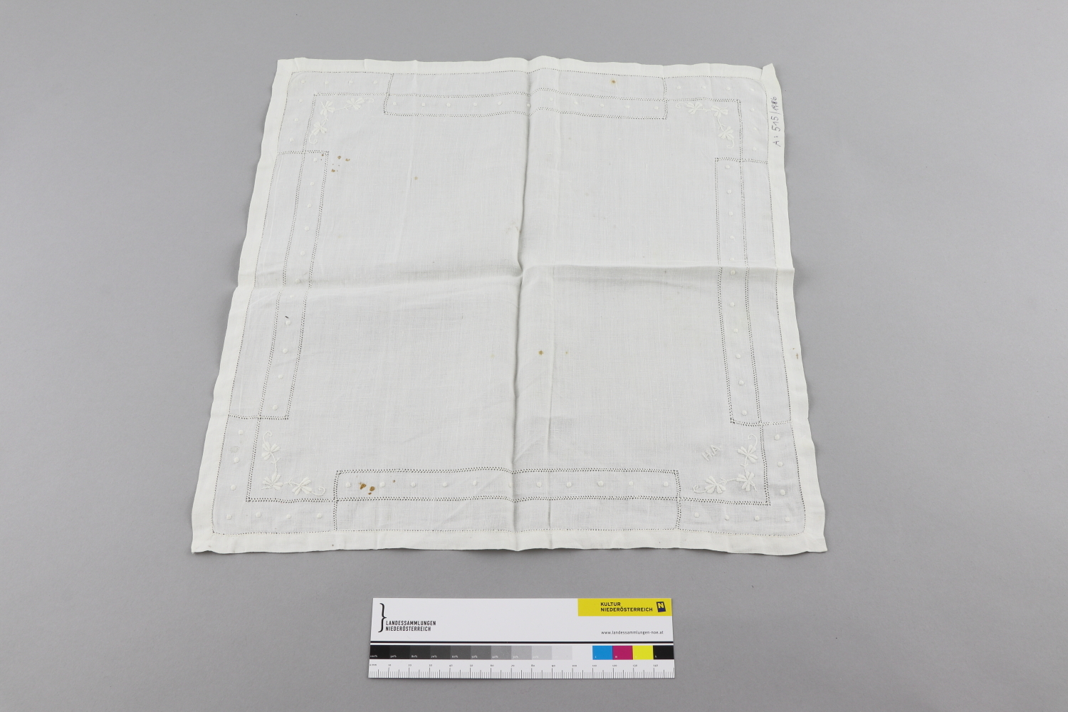 Weißes Taschentuch aus Leinenbatist mit Ajourstickerei und Monogramm "H.A."