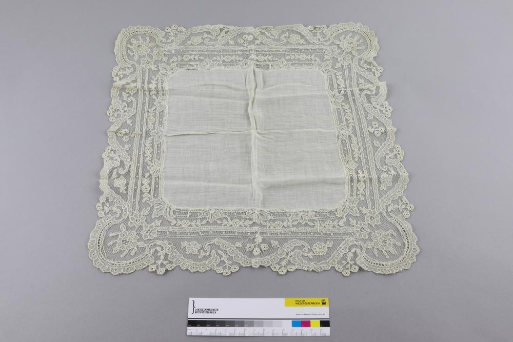Taschentuch aus Batist mit Tüllspitze eingefaßt, in Ecru.