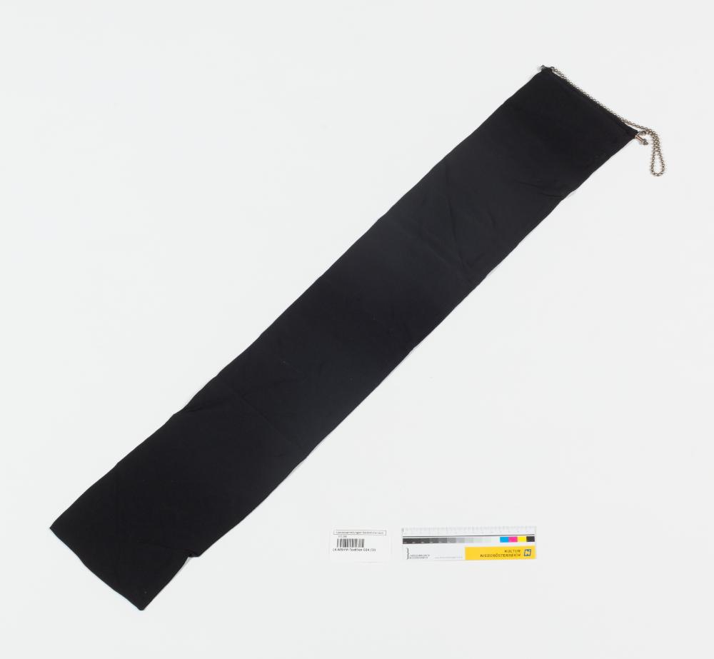 Schwarzer Trauerflor aus Rips-Band mit geschraubter Querstange und Kugelkette.
