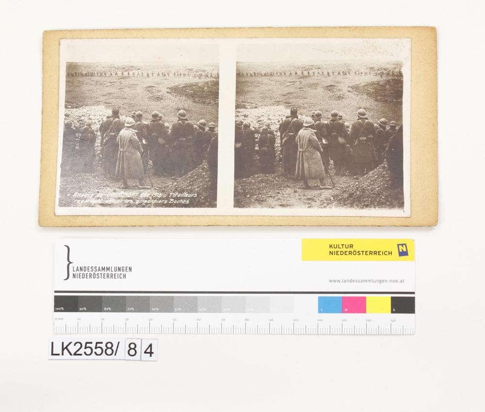 Attaque de DOUAUMONT dec 1916. Tirailleurs regardant astier les prisonniers Boches.