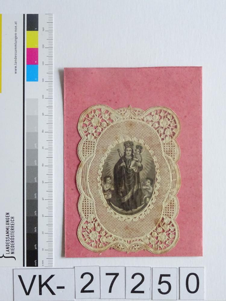 Mank, "Maria Mank am grünen Anger"; Vorderseite: Gnadenbild = Maria mit Kind; Rückseite: handschriftlich "Maria Mank NÖ"