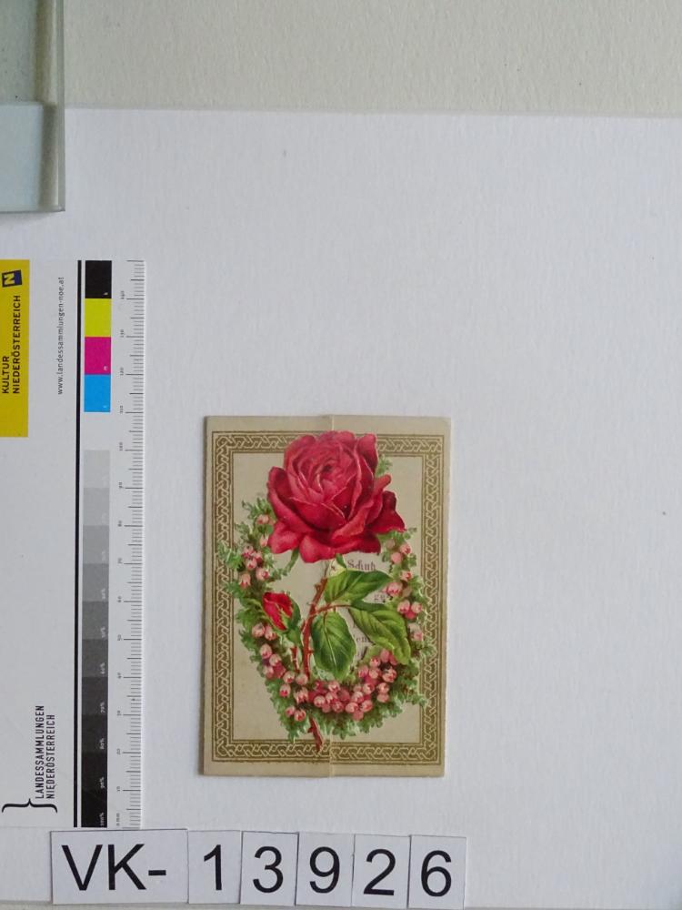"Maria Schutz" im Semmeringgebiet; aufklappbar; Vorderseite: Rosen, Spruch; Innenseiten: Gnadenbild = Maria mit Kind, Wallfahrtskirche, Schutzengel, Gebet; Rückseite: "Gebet", "Druck und Verlag Franz Schemm, Nürnberg"