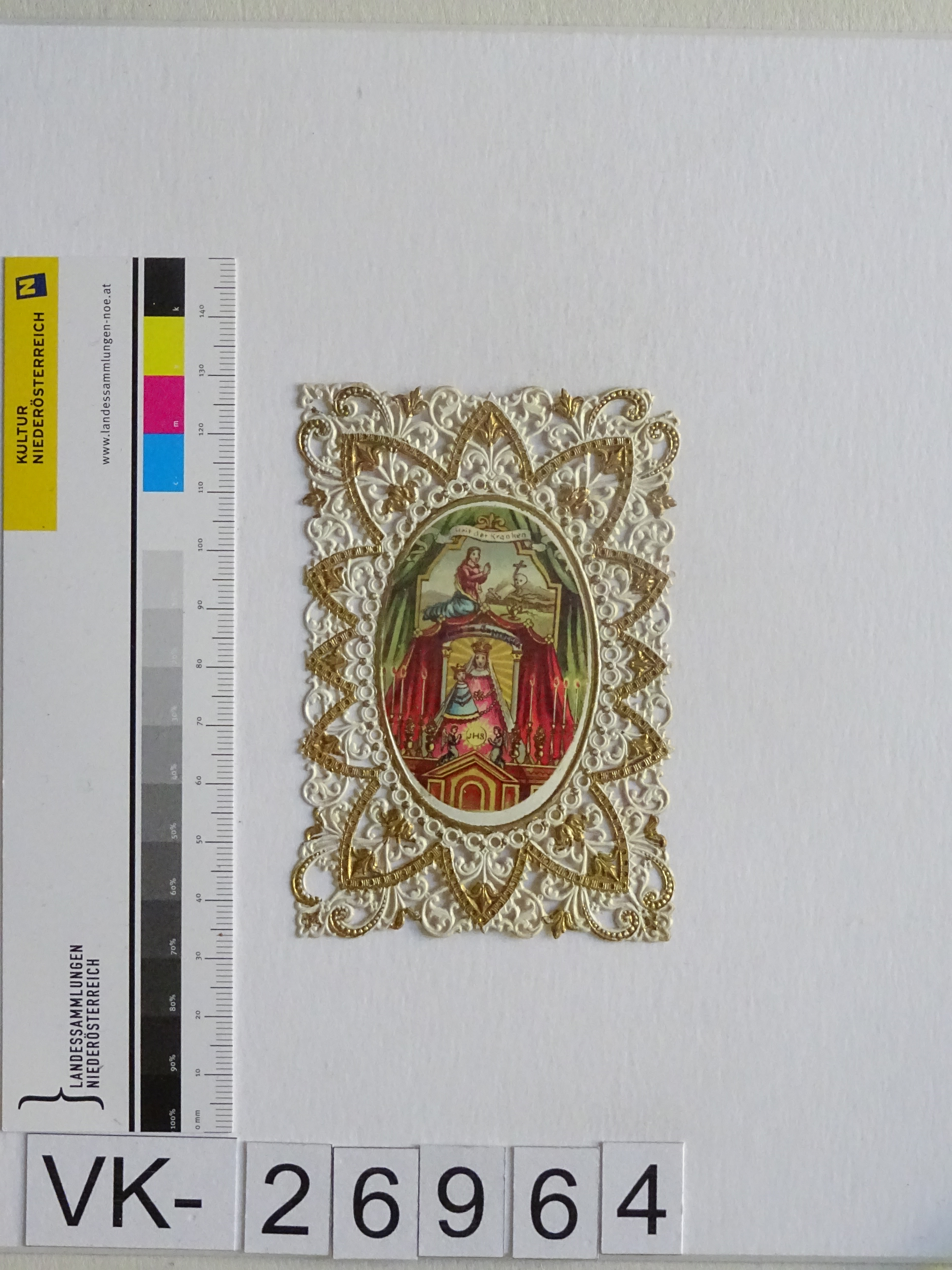 Material/TechnikSpitzenbild; Druckgrafik, polychrom; Goldprägung