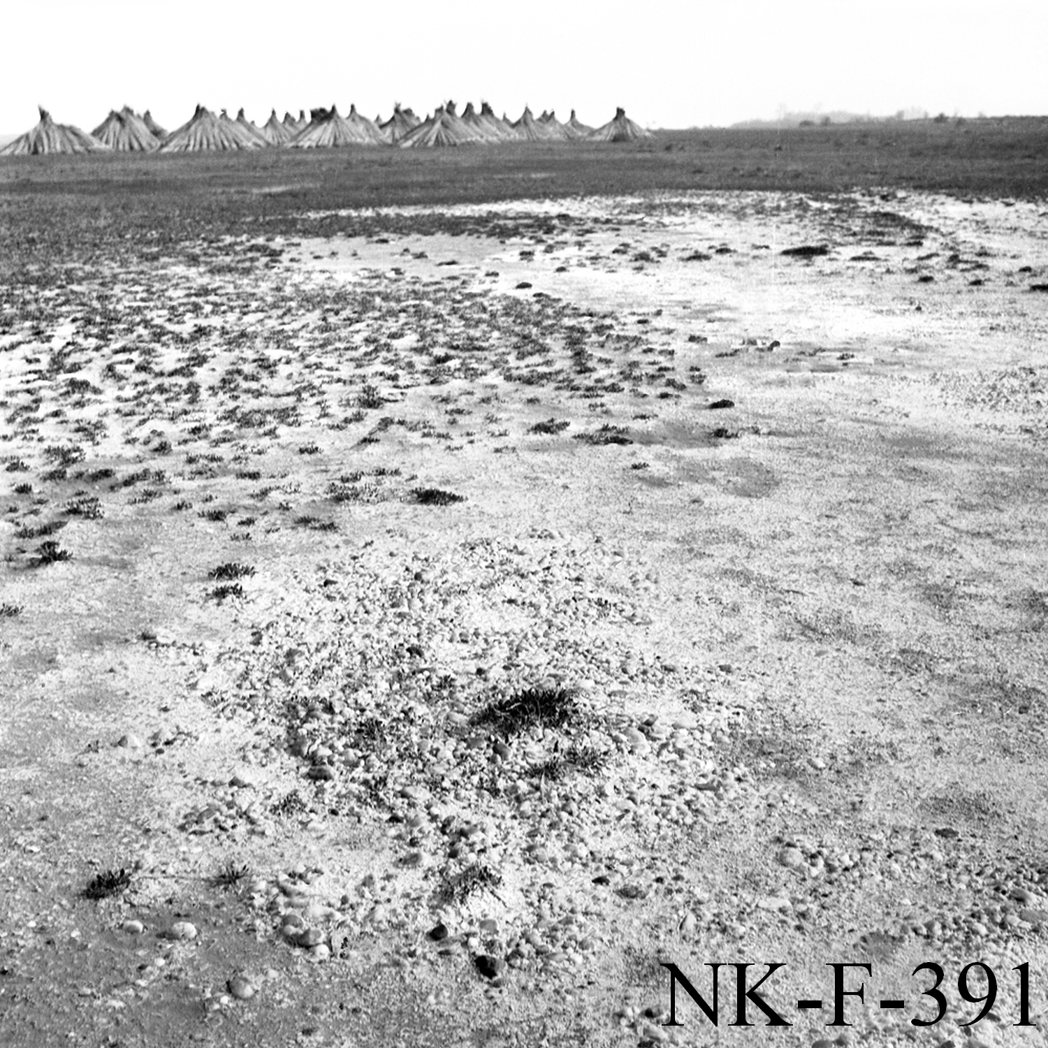 Neusiedlersee, Seewinkel, Salzseen, am oberen Bildrand aufgeschlichtete Schilfmandln