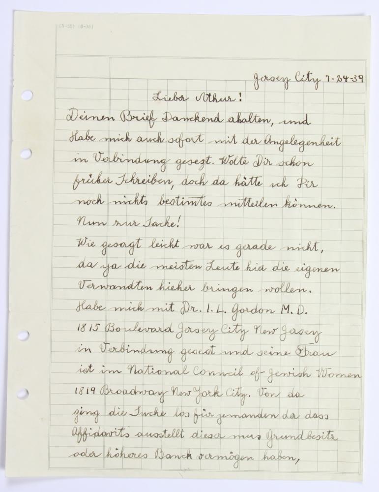 Frank Gruber versicherte Arthur Fantl-Brumlik seine Hilfe und gab ihm die Adresse von Dr. Gordon und Sol Klapp. Dr. Gordons Frau arbeite im National Council of Yewisch Women und hatte damit Verbindung, um bei der Einwanderung zu helfen. Sie machte mit Sol. Klapp einen ausgewanderten Österreicher ausfindig, der über genug Grundbesitz bzw. Kapital besaß, um ein Affidavit für die Familie zu bekommen.