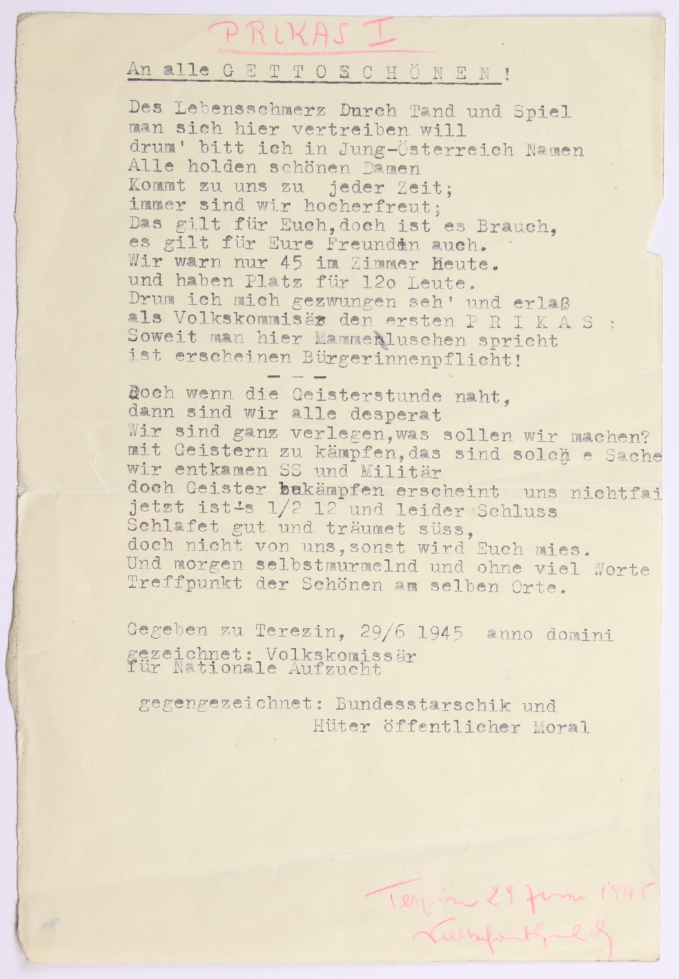 Otto Kalwo, geboren am 2. Februar 1918 in Wien, gestorben am 23. Mai 2018 in Suffern Bundesstaat New York, überlebte den Holocaust in mehreren NS-Lagern. Er war das jüngste von zwei Kindern von Josef und Hermine (geb. Rosner) Kalwo. Gemeinsam mit seinen Eltern und seinem Bruder Paul wurde Otto Kalwo am 9. Oktober 1942 mit dem Transport IV/13 von Wien, wo sie in einer Sammelwohnung in der Krummbaumgasse 2 im 2. Wiener Gemeindebezirk lebten, nach Theresienstadt deportiert. Dort kam sein Vater Josef Kalwo am 17. April 1944 um. Zum Tod seines Bruders ist lediglich das Datum der Deportation vom 29. September 1944 ins Konzentrationslager Auschwitz bekannt. In Auschwitz bzw. dem Außenlager Gleiwitz lernte er Walter Fantl-Brumlik kennen, mit dem er nach dem Todesmarsch ins KZ Blechhammer (bei Slawentzitz/Slawiecice westlich von Gleiwitz/Gliwice) die Befreiung erlebte. Von dort aus machte sich Otto Kalwo gemeinsam mit Walter Fantl-Brumlik, Leo Luster und anderen Überlebenden auf den Weg in den Westen. Im ehemaligen Kriegsgefangenenlager Sagan schnappte sich Otto Kalwo eine Schreibmaschine und begann das Erlebte der letzten Jahre erstmals literarisch in Worte zu fassen, was er bei seinem späteren Aufenthalt in Theresienstadt und Deggendorf fortsetzte. Seine abgetippten Manuskripte teilte er dabei an andere Überlebende aus – so auch an Walter Fantl-Brumlik, der sie aufbewahrte und die Texte als Teil seines Nachlasses an die Landessammlungen NÖ übergab. Gemeinsam mit seiner Mutter Hermine, die den Holocaust in Theresienstadt überlebte, ging Otto Kalwo ins DP-Camp Deggendorf, von wo sie gemeinsam im März 1947 in die USA auswanderten. Noch im selben Jahr heiratete er in den USA die Wienerin Gertrud Kornfeld (geb. Böhm) und änderte später seinen Namen auf Lawrence P. Calvert.