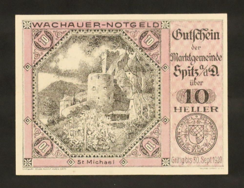 Wachauer Notgeldschein der Gemeinde Spitz 10 Heller