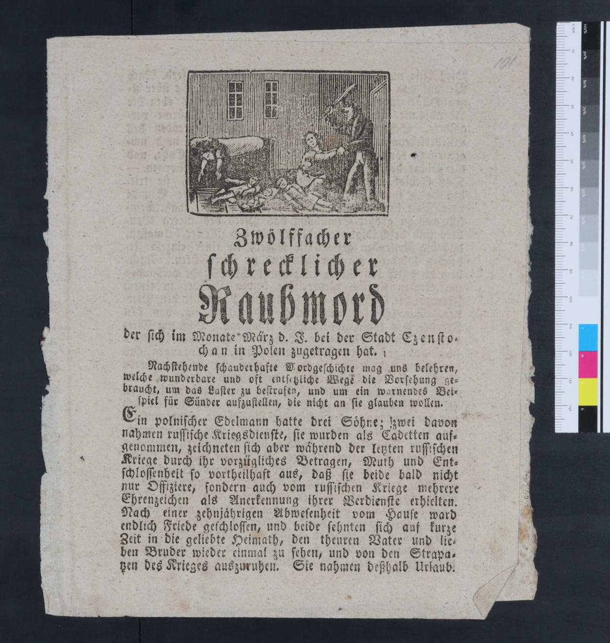 „Zwölffacher schrecklicher Raubmord der sich im Monate März d. J. bei der Stadt Czenstochan in Polen zugetragen hat.“