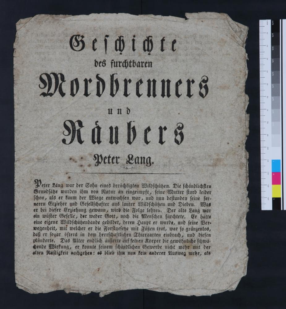 „Geschichte des furchtbaren Mordbrenners und Raeubers Peter Lang.“