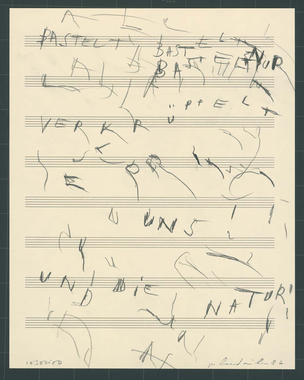 Signaturli.u.bez.: "LESELIED", re.u.sign.u.dat.: "gerhard rühm 86"