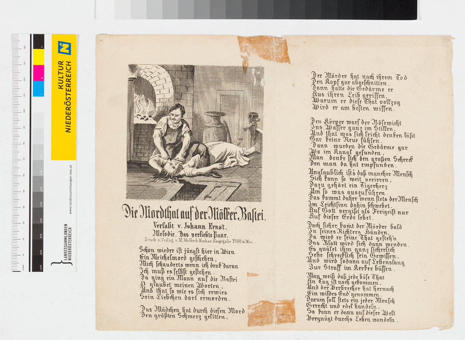 Bänkellied mit halbseitigem Druck der Tat (Kupferstich), sechs Strophen, einseitiger Druck.
