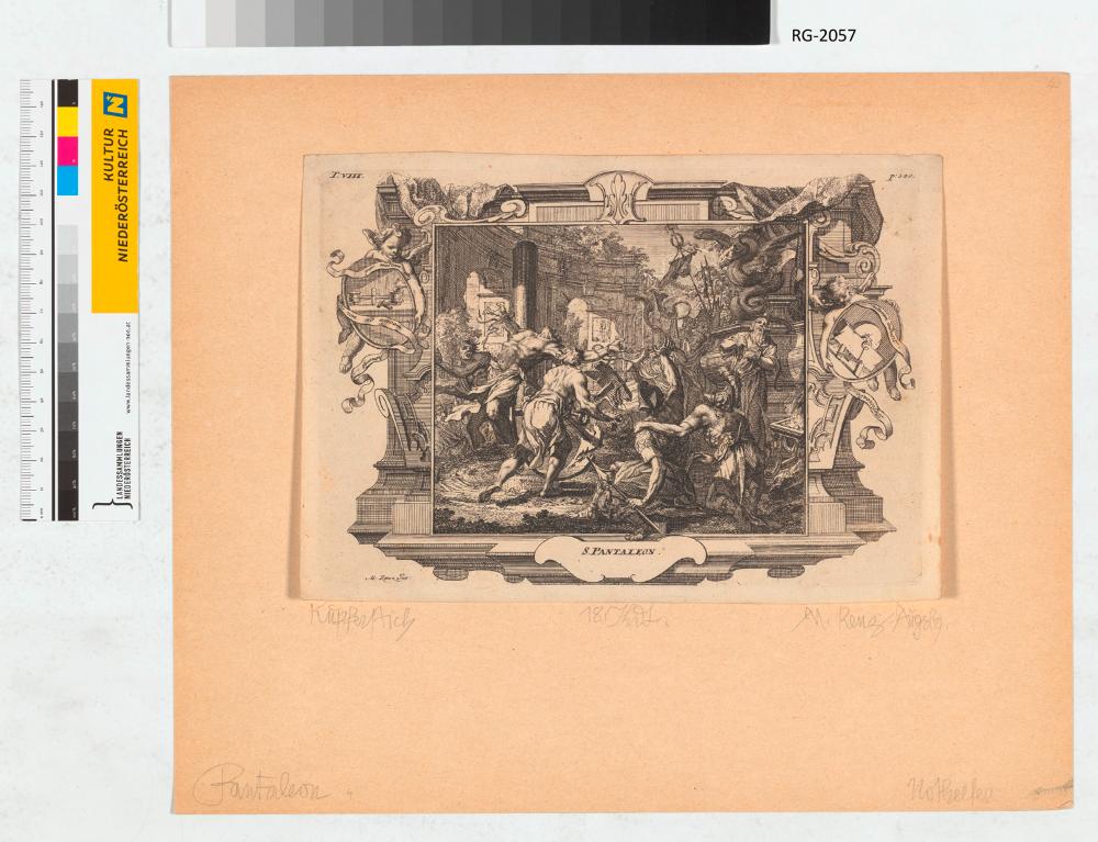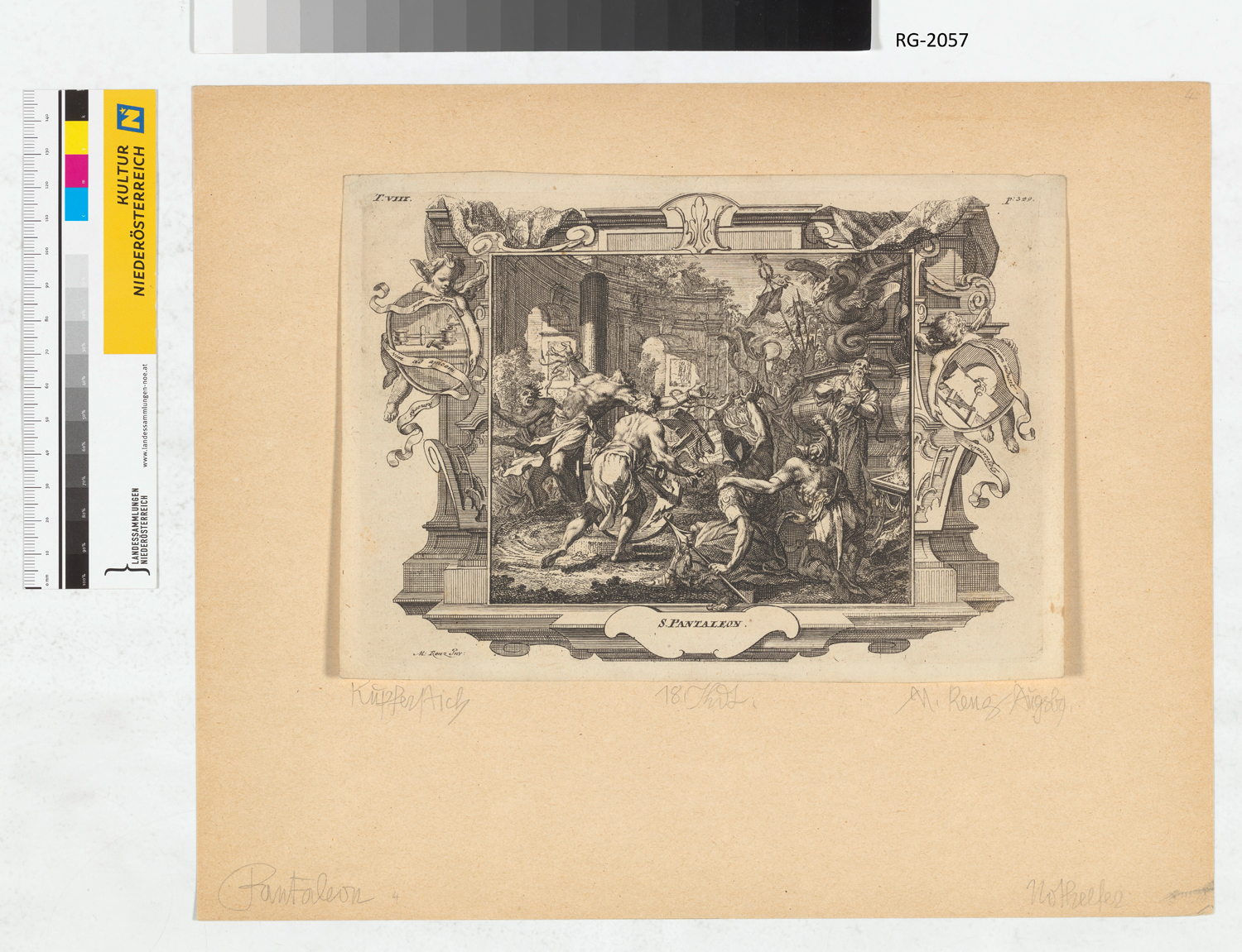 Kupferstich aus: "Geistreiche Gesänge und Lieder auf Alle Sonntags-Evangelien und Episteln So in dem christlichen Jahre enthalten seyn : 7 : Geistreiche Gesänge und Lieder Uber Sonn- gemeine Ferial- und Fest-Tags-Episteln und Evangelia, welche In dem VII. Theile Des Christlichen Jahres Von der Verkündigung der Allerseeligsten Jungfrauen Biß auff Die Heimsuchung Mariä Begrieffen sind"