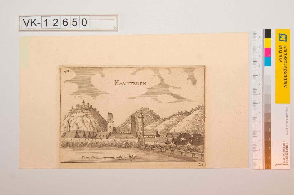 Vischer-Stich mit der Darstellung von Mautern, Bildtext: "MAUTTEREN"