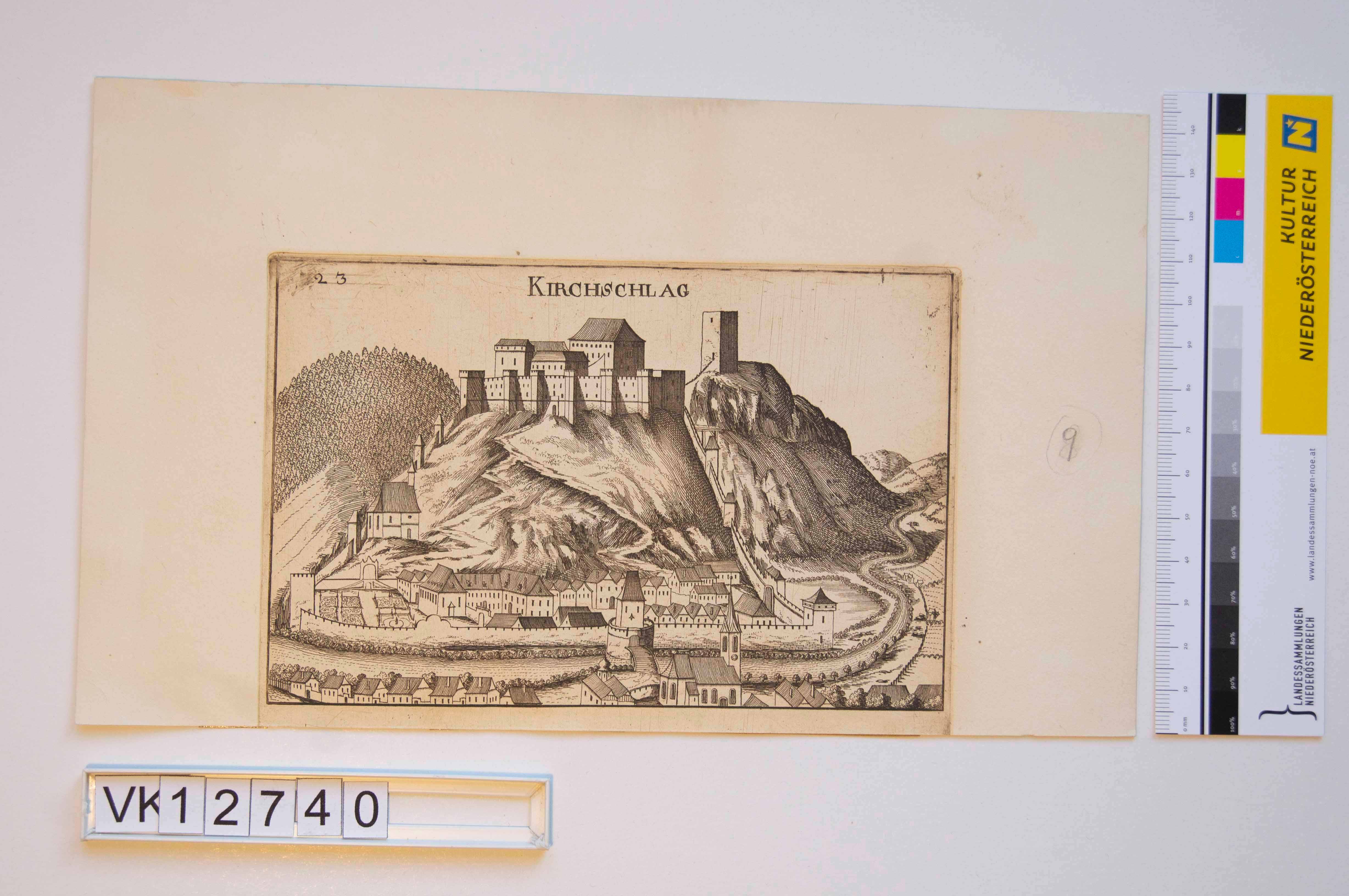 Vischer-Stich mit der Darstellung von Kirchschlag, Bildtext: "KIRCHSCHLAG"