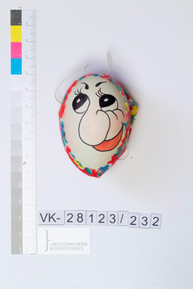 Material/TechnikHühnerei, Stoff, Garn, bemalt Applikationen
