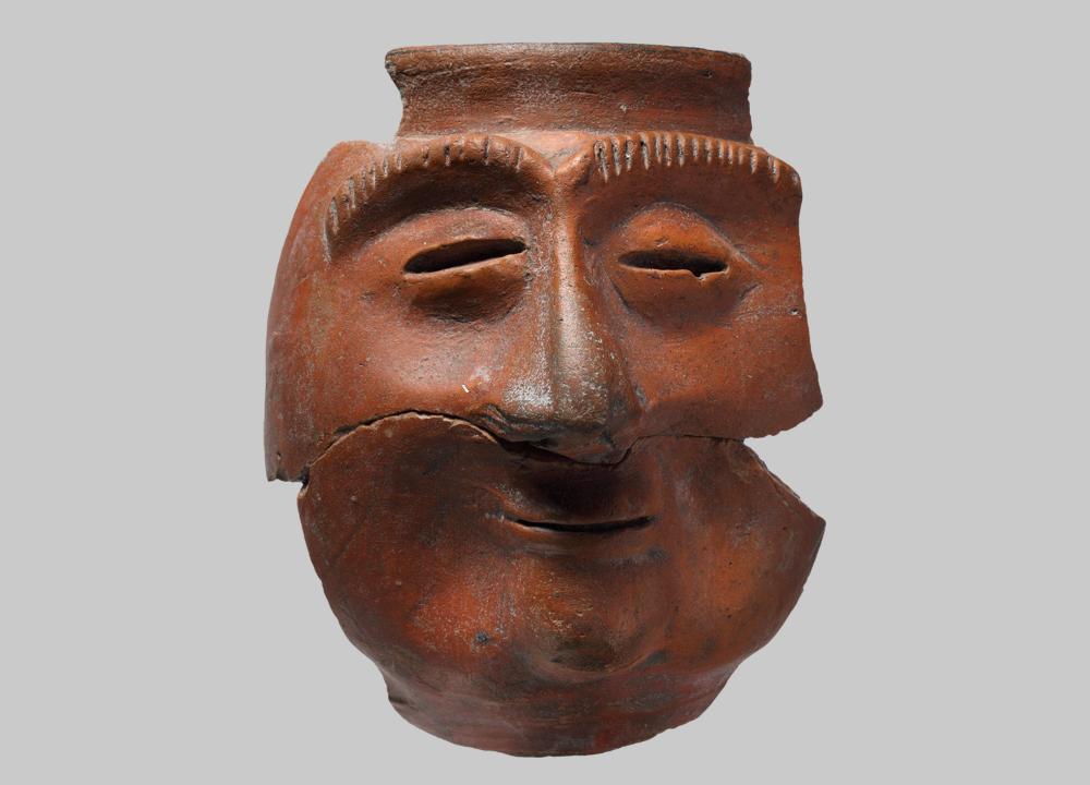 Technische DetailsTöpferscheibe, das Gesicht aus der Gefäßwand herausgeformt und tlw. aufgesetzt